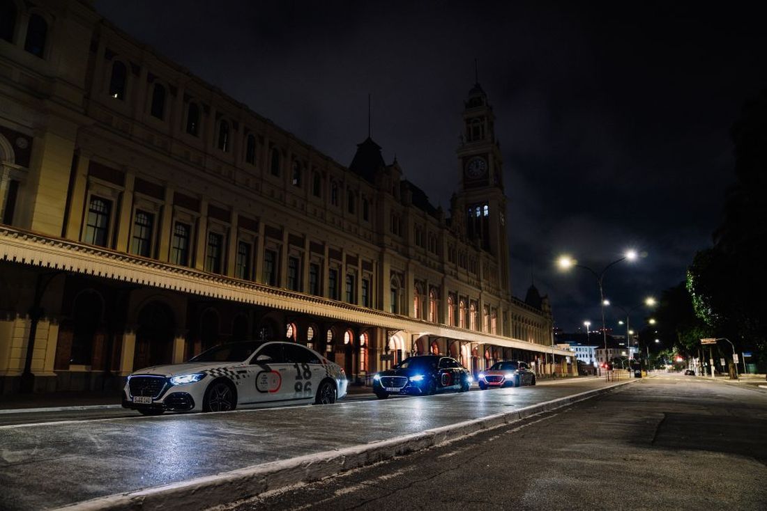 En el camino, la nueva Clase S se une a vehículos clásicos, modelos de producción actuales y vehículos de la flota local, creando encuentros únicos en cada punto de control.