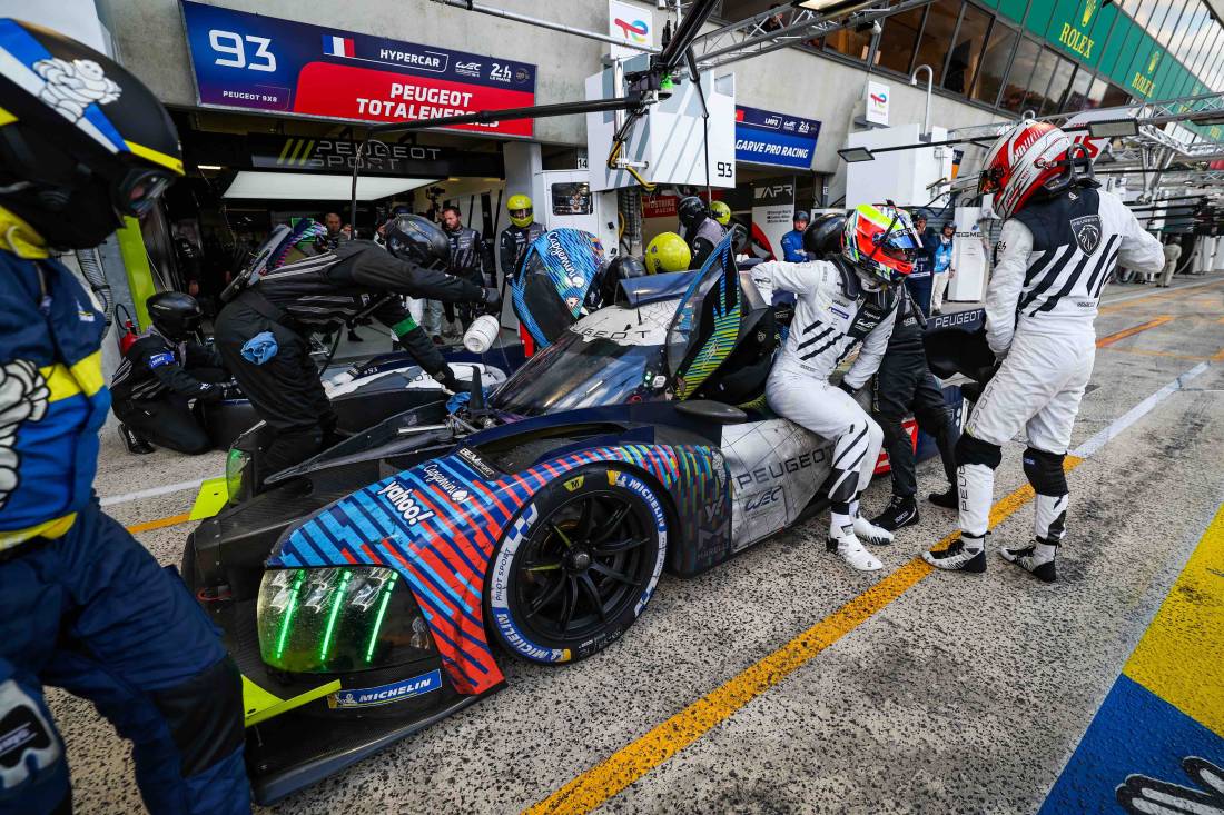 Sin embargo, con 2h30 para el final, ambos autos se vieron obligados a regresar al garaje debido a un problema hidráulico. Una vez más, el equipo mostró su habilidad reactiva, ya probada durante el reto de pitstop ganado a principios de semana. Gracias a este increíble trabajo en equipo, los dos autos pueden volver a la pista. Y lo mismo ocurrirá en la última hora de carrera cuando el #94 tuvo que entrar en boxes por una intervención en el motor.