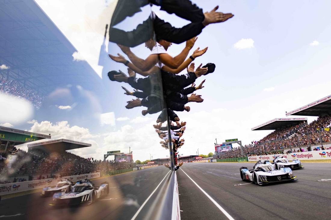 Paul Di Resta y Nico Müller cruzaron la línea de meta de las 24 Horas del Centenario de Le Mans juntos, bajo la mirada de Linda Jackson, CEO de Peugeot y Carlos Tavares, CEO de Stellantis que vino a apoyar al equipo durante esta larga semana de carreras.