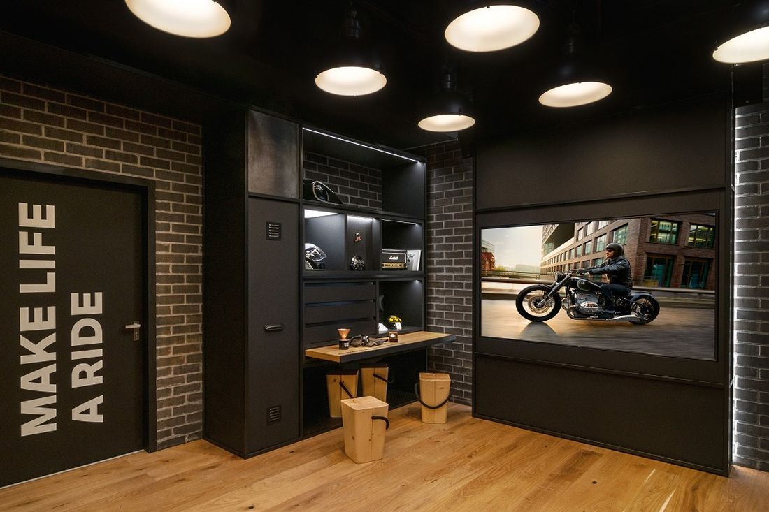 El desafío al diseñar la sala de la marca BMW Motorrad fue traducir el cautivador espíritu de la marca en un espacio de marca interactivo en una superficie de 38 metros cuadrados dentro de las instalaciones existentes. El resultado fue una interacción en varios niveles: la experiencia emocional de la marca para los participantes se fusiona con el diseño arquitectónico y un programa de formación de marca concebido emocionalmente.