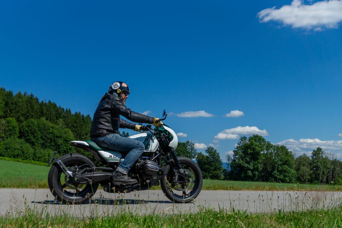 La “hermana grande” también recibió un completo cambio de imagen personalizado. A través de la elevación y estrechamiento del tanque (– 30 mm) y un asiento autoportante suspendido con un “Targa-Bügel” hecho a mano, la línea de vuelo se volvió notablemente más dinámica. La nueva postura, apoyada por un aumento de 20 mm en la altura del chasis mediante un amortiguador Wilbers, enfatiza de manera impresionante la presencia de la R 18.