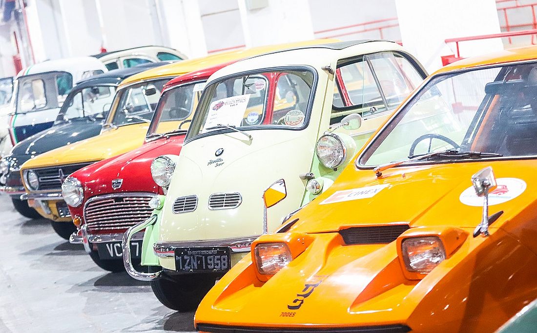 La isla de los microcoches, compuesta por BMW Isetta, Mini y Fiat 500, entre otros modelos, cautivó a grandes y pequeños.