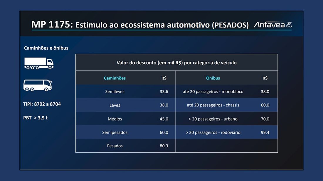 Cuando se publicó la MP 1.175, el 6 de junio, Anfavea pronosticó que el programa para automóviles duraría solo un mes, pero nada avanzó sobre lo que esperaba del paquete para vehículos pesados en relación a su duración. En el caso de los camiones, el valor medio del producto ronda actualmente los R$ 700 mil, lo que significa que el crédito de R$ 700 millones podría generar ventas de nuevos a cambio de usados del orden de 10 mil unidades.