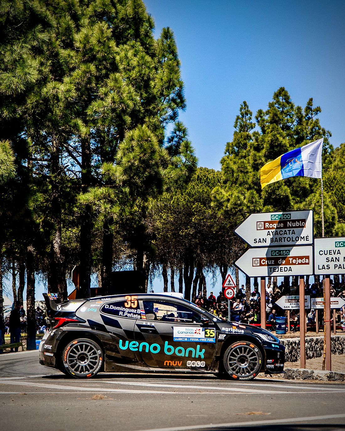 “Era el rally del colega Rogelio Peñate. Era mi primera carrera en la isla. El primero de asfalto con el Yaris y uno de los más complicados del mundial con 29 inscriptos en la clase… ¡Y todo ha salido mejor de lo que esperábamos!”, agregó Domínguez en sus redes sociales.