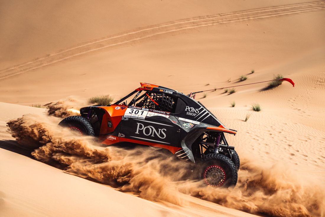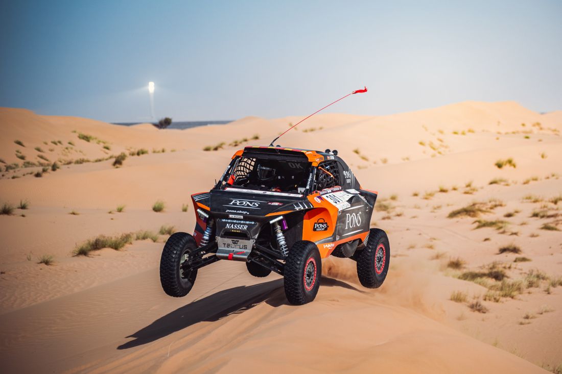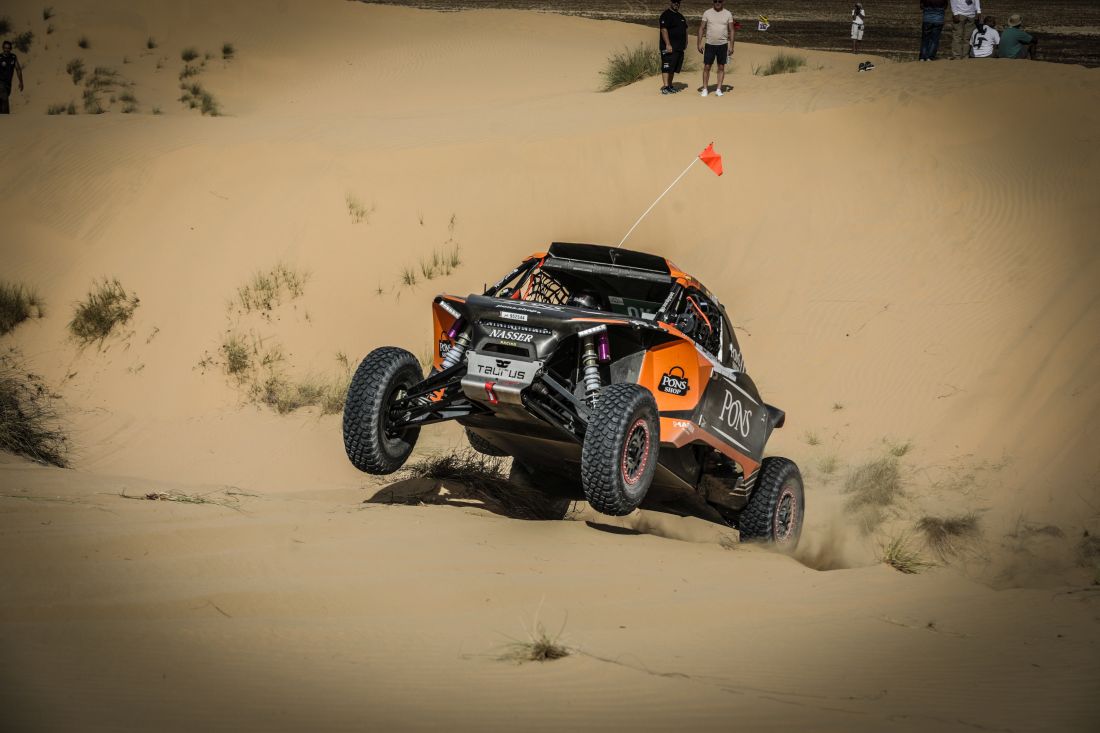 El ilerdense afrontaba la última prueba del curso como colíder empatado a 187 puntos con su máximo rival por el título, Khalid Al-Jafla, que corría en casa y se había mostrado muy competitivo en las últimas citas, celebradas en la península arábiga. A pesar de la presión, Pons volvió a demostrar su regularidad y capacidad de adaptación a todo tipo de terrenos. Supo imprimir una importante velocidad y correr con la cabeza a los mandos de su Taurus T3 Max del equipo Nasser Racing a lo largo de los 394 kilómetros cronometrados, que combinaron pistas de tierra, desierto abierto y las dunas dubaitíes.