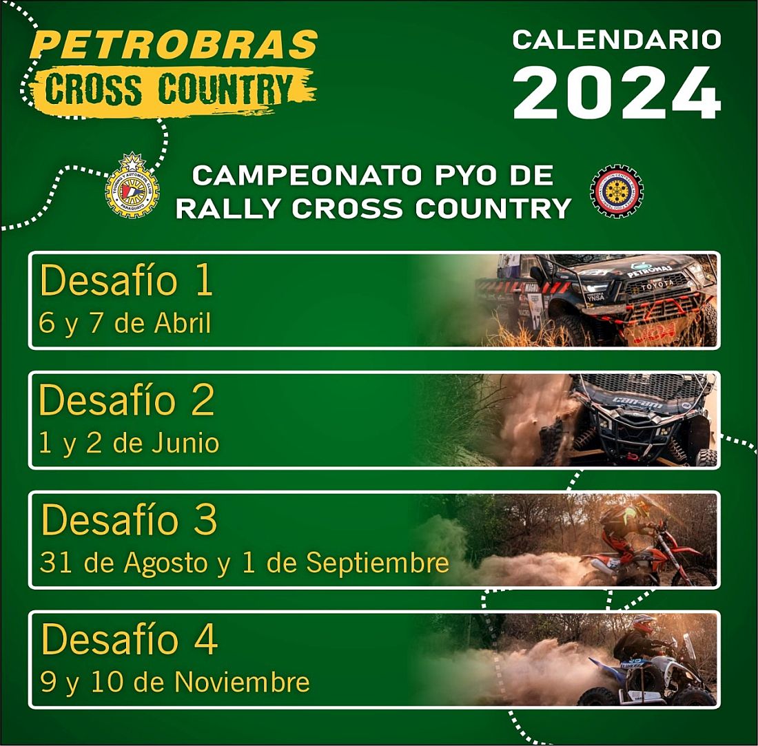 De acuerdo a los datos brindados por Ivanna y Cherry Curi, quienes trabajarán en forma conjunta en la organización de todas las pruebas oficiales de la temporada la primera fecha será con el Desafío de Ñeembucú, que esta vez marcará el punto de partida y no el cierre como en años anteriores y que se desarrollará entre los próximos días 6 y 7 de abril.