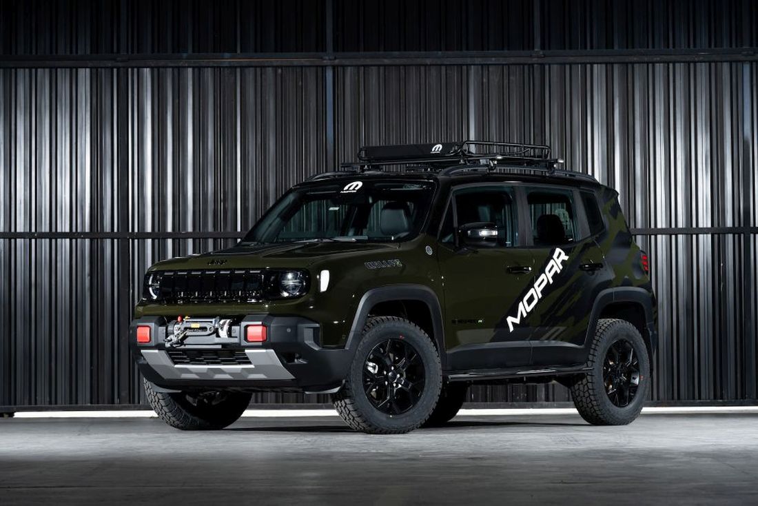 El Renegade Mopar XT, creado por el equipo del Stellantis Design Center y Mopar, se presentó durante el evento de lanzamiento del vehículo. Llantas negras satinadas, un kit de elevación de suspensión de 2 pulgadas, amortiguadores recalibrados, neumáticos Yokohama Geolander A/T G018 245/65 R17, llantas con espaciadores de 20 mm y anchos de vía que compensan la mayor altura para mantener la estabilidad son algunos de los elementos que llaman inmediatamente la atención.