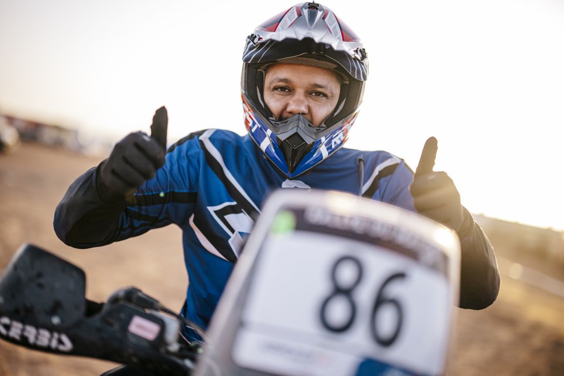 “El sueño de todo piloto de Rally Cross Country es el Dakar y es por eso que me preparo desde hace varios años para mi primera gran aventura. Desde los 18 años en que me subí por primera vez a una moto, me enfoqué en el enduro. Luego conocí de cerca el Dakar a su paso por mi país y traté de aprender todo lo posible al respecto. En 2019 inicié mi carrera como piloto y tras la pandemia logré el Campeonato Nacional de mi categoría.”