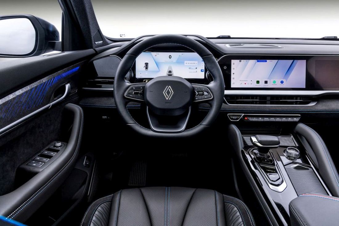 Renault se inspira en los códigos de diseño de la marca Alpine e incorpora un techo bitono, un acabado de pintura satinada en la versión híbrida completa E-Tech del esprit Alpine, así como detalles azules grabados con láser en las puertas, los parachoques y la parrilla delantera. Esta versión reafirma su carácter exclusivo con llantas de 20 pulgadas con acabado diamantado y oscurecidas. La parrilla delantera, sello distintivo de Renault, presenta un patrón de rombos del mismo color que la carrocería. Los faros LED Pure Vision del Koleos se integran armoniosamente con el frontal y la parrilla.