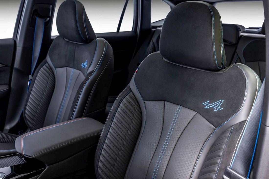 El interior destaca por sus asientos con diseño y materiales exclusivos, y el logotipo Alpine Esprit. El color predominante es el negro, con detalles Alpine como las costuras azules, blancas y rojas en el volante y el reposabrazos central, y detalles azules en la tapicería y los cinturones de seguridad. Además del tejido texturizado, la Alcantara está presente no solo en los asientos, sino también en los paneles de las puertas y el cuadro de instrumentos, aportando un toque de lujo al habitáculo. Otros detalles también se inspiran en el universo Alpine, como la «A» en relieve en los asientos o la pequeña bandera tricolor en el asiento del conductor.