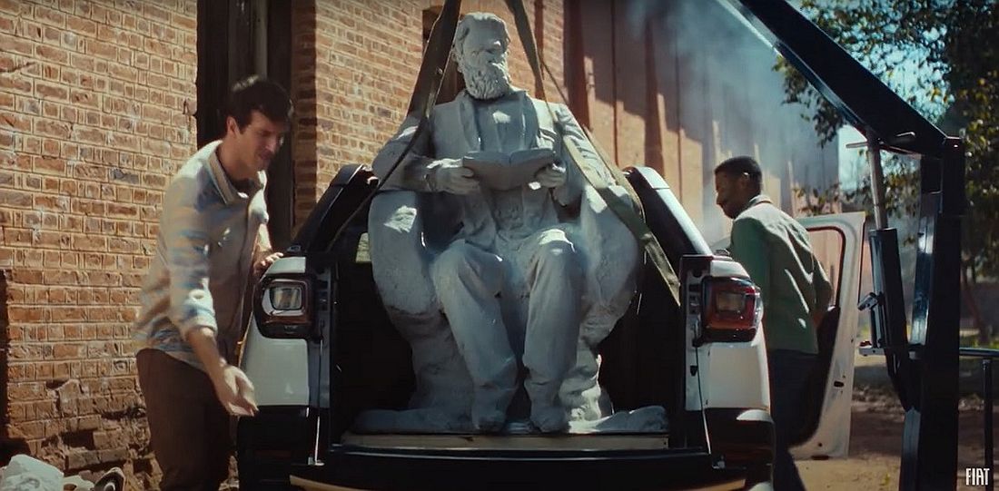 El rendimiento de Strada con nuevo motor sorprende incluso a la estatua en la nueva campaña de Fiat