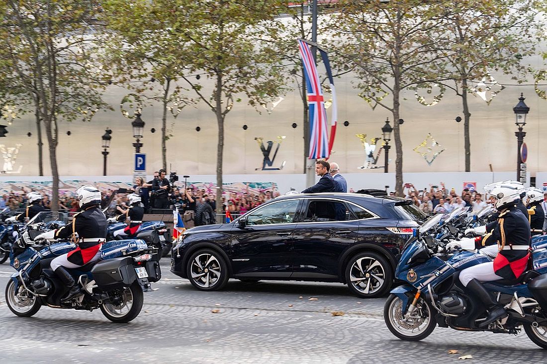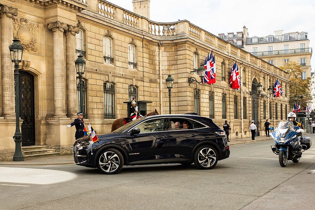 Varios otros DS 7 formaron la procesión, cuyas imágenes fueron transmitidas en todo el mundo como símbolos de la hospitalidad francesa. El presidente de Francia, Emmanuel Macron, recibe a Sus Majestades el rey Carlos III y la reina Camilla en una visita de Estado a Francia del miércoles 20 al viernes 22 de septiembre de 2023.
