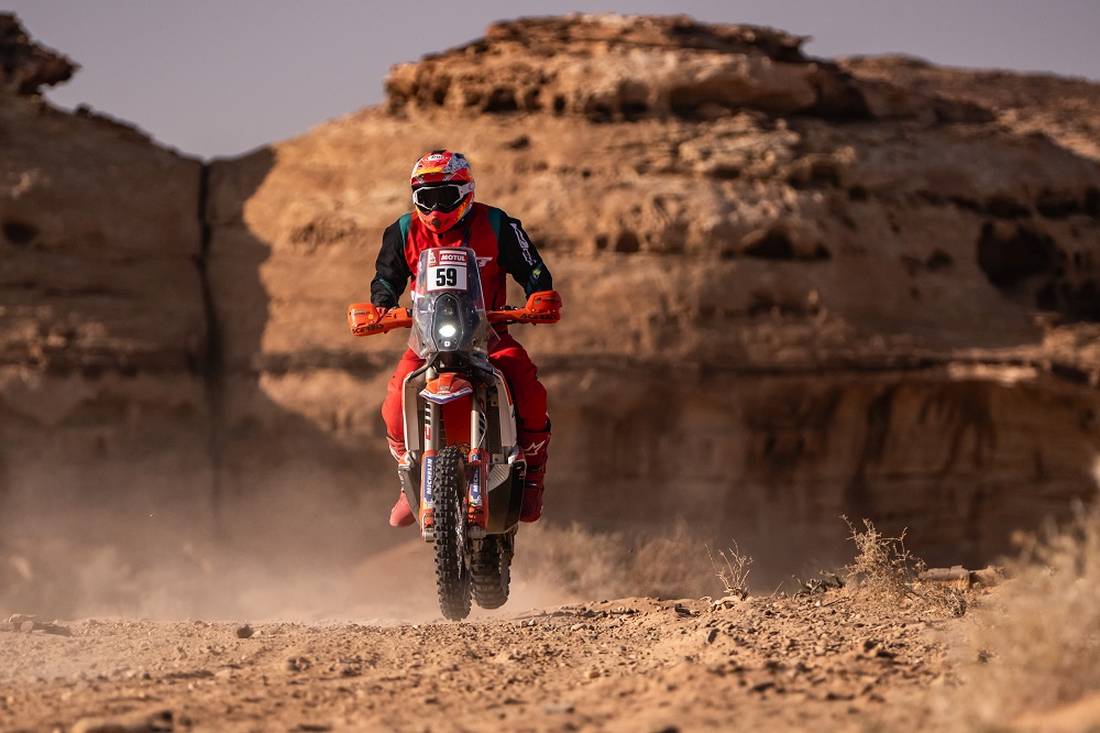 La actividad de este día comenzó la partida desde el campamento de Al-Ula, para adentrarse con las complejidades habituales, pero promediando la etapa, apareció una superficie de piedras volcánicas, por más de 100 kilómetros, que perturbó a los pilotos, que en algunos casos protagonizaron caídas y golpes de consideración.