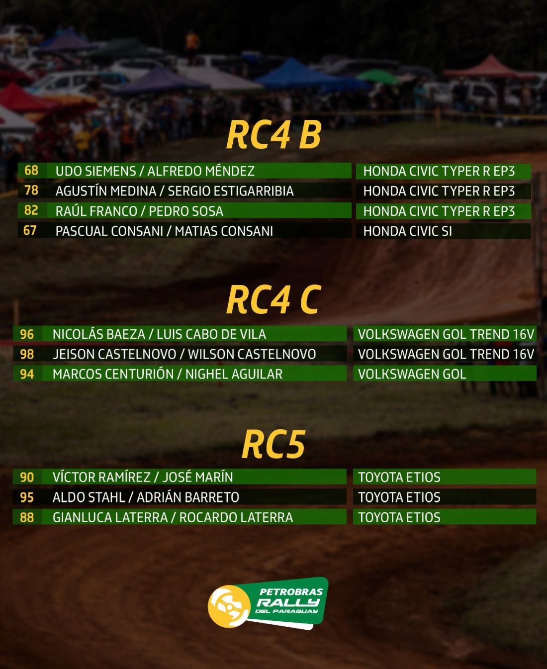 En la RC4C, en pilotos: Nicolás Baeza 125 y Gustavo Benítez 91. En los Navegantes: Luis Cabo de Vila 125 y Jorge Arrúa 91.