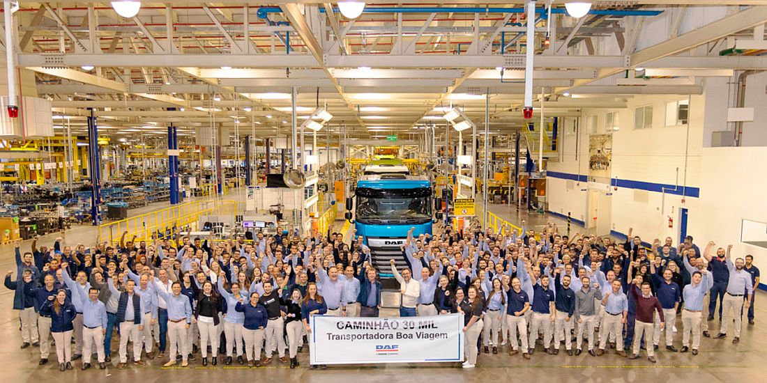 La conmemoración de los 30.000 camiones producidos en Brasil tuvo lugar el 29 de junio, cuando los empleados se reunieron para la tradicional fotografía junto al camión protagonista del hito histórico, un XF FTS 6×2. También participaron del evento los ejecutivos Wilson Sturmer y Juliano de Souza, de Transportadora Boa Viagem, responsables de la compra del camión número 30.000 a través de la concesionaria DAF MacPonta, en Ponta Grossa.