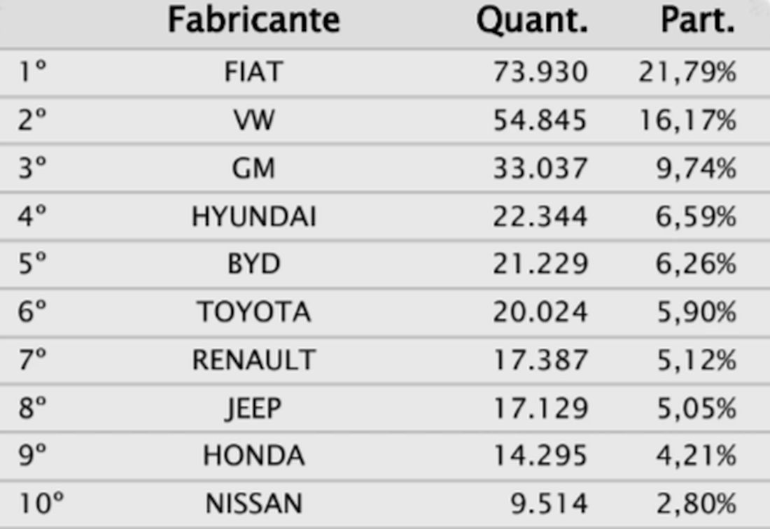 Fiat, líder del mercado, representó nada menos que el 21% de las matriculaciones de vehículos en 2025, prácticamente el doble de lo vendido por GM. Un panorama completamente diferente al de hace no mucho tiempo.