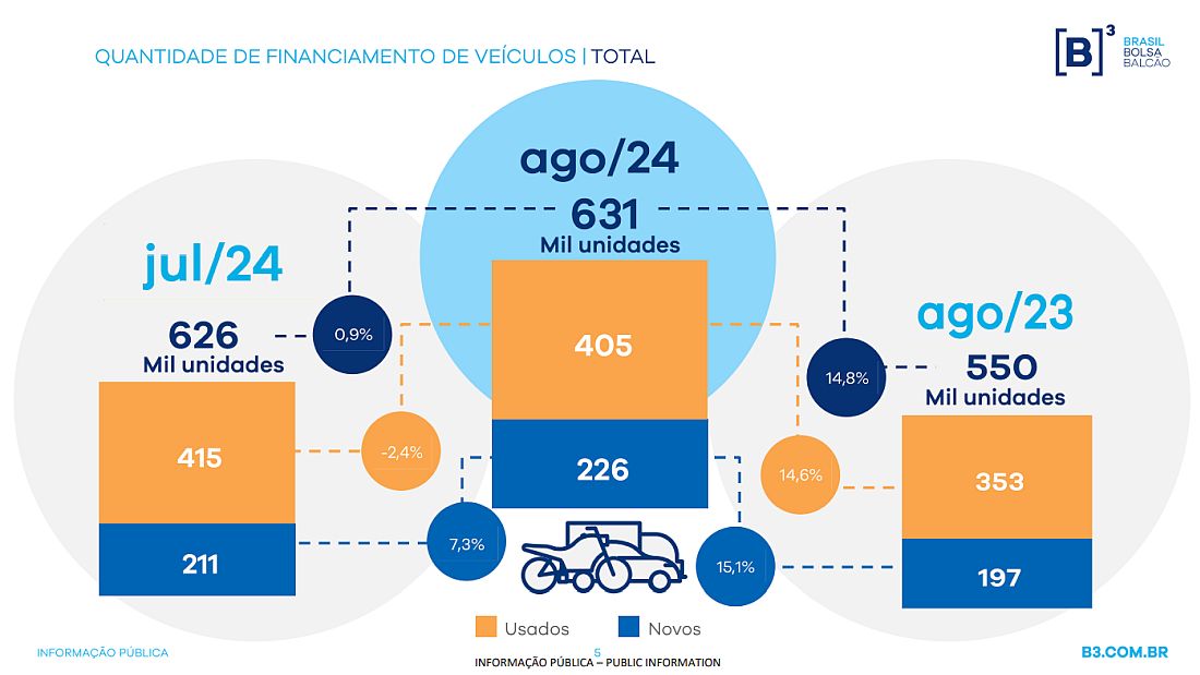 Según datos de B3, en los primeros ocho meses de 2024 se financiaron 4,6 millones de unidades, un importante aumento del 22,9% respecto al mismo período del año pasado, o 874 mil unidades más.
