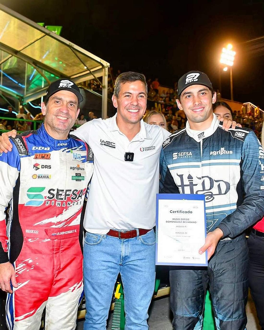 El mundialista local, Diego Domínguez Bejarano y su navegante, también español, Rogelio Peñate con un Skoda Fabia RS, completaron el podio de la general arribando a 25s48/100 de los ganadores, pese a ser los más ganadores de los sectores de clasificación, pero con un arranque complicado en la prueba.