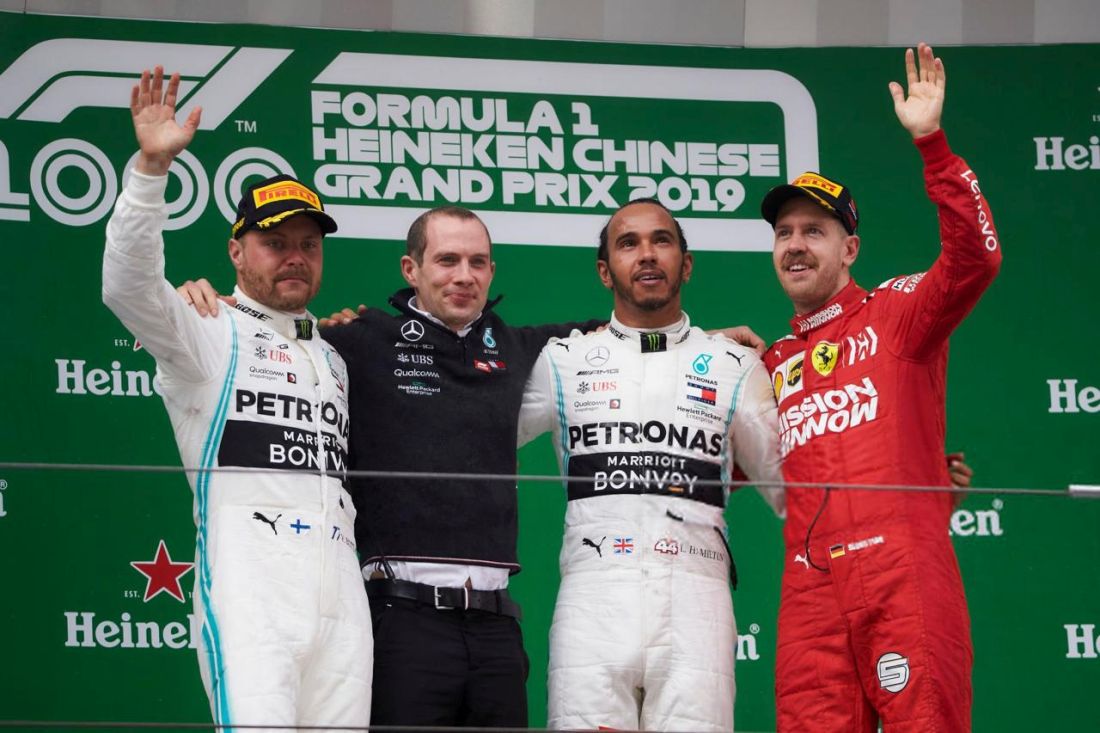 En el Circuito Internacional de Shanghái, Lewis Hamilton dominó de principio a fin para llevarse la victoria, completando un doblete de Mercedes con su compañero Valtteri Bottas en segunda posición. Sebastian Vettel rescató el tercer lugar para Ferrari, cerrando un podio que reunió a los tres pilotos más dominantes de la era híbrida en una fecha para enmarcar.