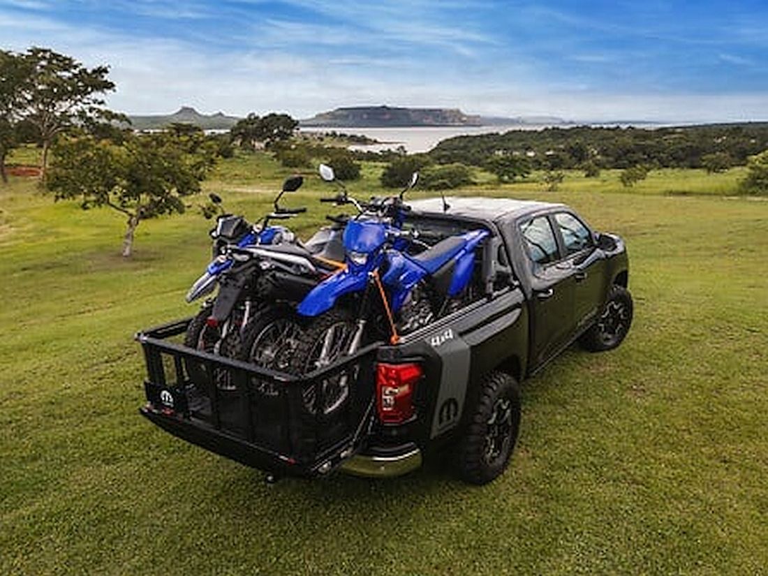 Y eso no es todo. Con atributos de un verdadero 4×4, la camioneta tiene 235 mm de distancia al suelo, un ángulo de entrada de 29° y un ángulo de salida de 27°. Otro punto a destacar es la cubeta, que tiene el mayor volumen de su categoría, con una capacidad de 1.314 l (NETO) sin protector de cubeta (1.211 l con el artículo). Tiene 1.630 mm de largo, 1.925 mm de ancho y 500 mm de alto. Para colmo, también está equipado con un san antonio, protector y marquesina.