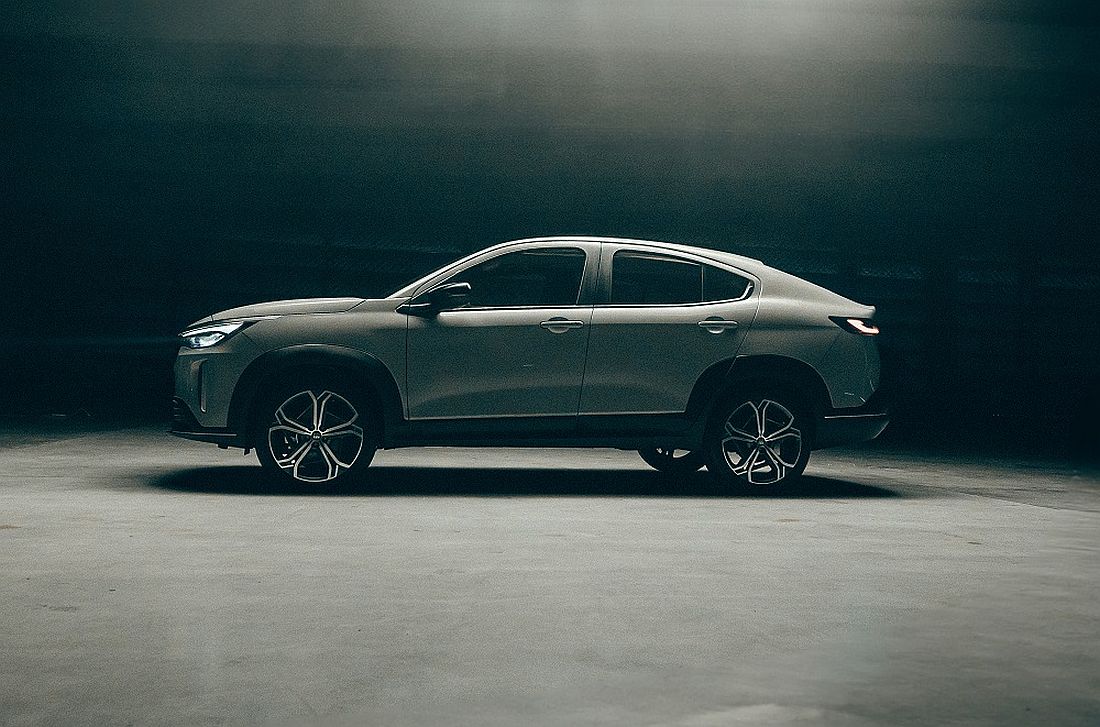 En la vista lateral, la silueta fluida llama la atención, con el pilar C inclinado y el techo proyectado hacia atrás. Esta es la esencia de un SUV coupé.