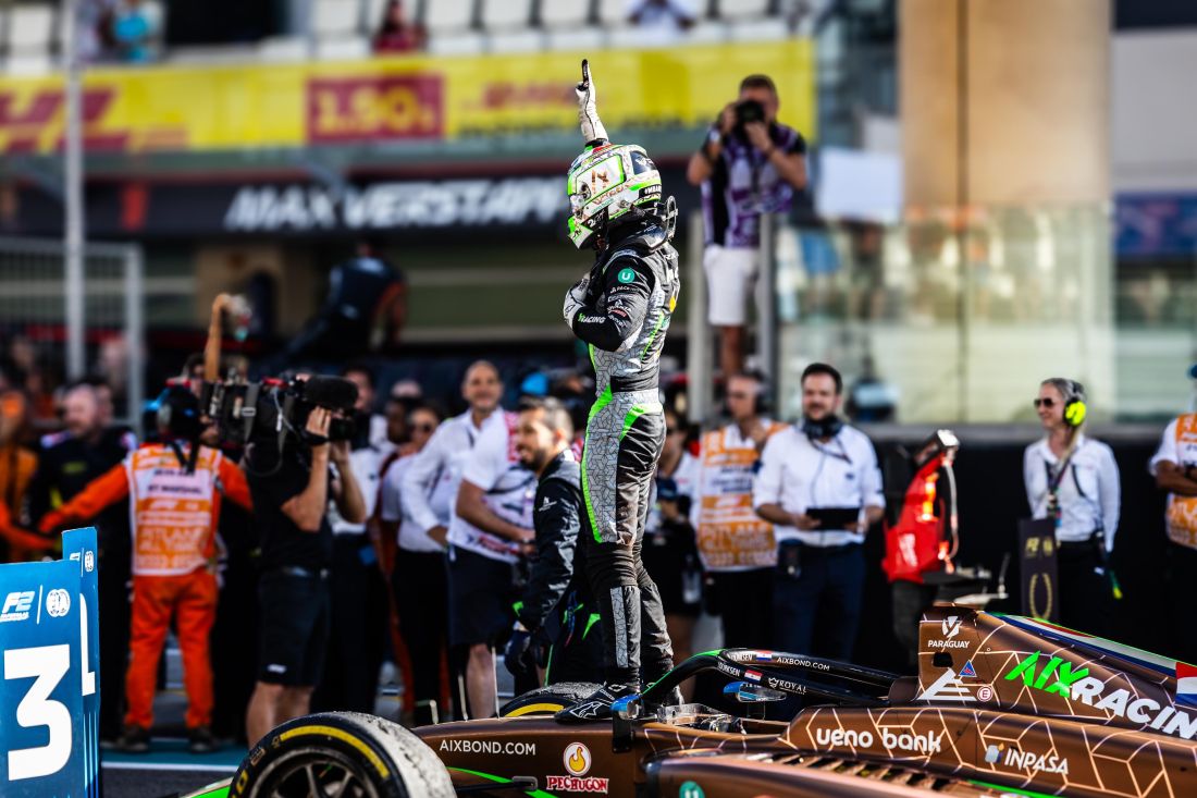 A continuación el informe oficial de la categoría que relata los pormenores de la carrera histórica de este piloto paraguayo que ya rompió todos los límites alcanzados por sus compatriotas predecesores en la historia de sus presencias en las categorías de pista y que se sumó al momento de gloria para otro sudamericano, el brasileño Bortoleto, que cerró su logro siendo segundo en la carrera de la fecha y se hizo del Campeonato de la Fórmula 2 FIA y ya tiene asegurada su butaca en la F1 para el año 2025: