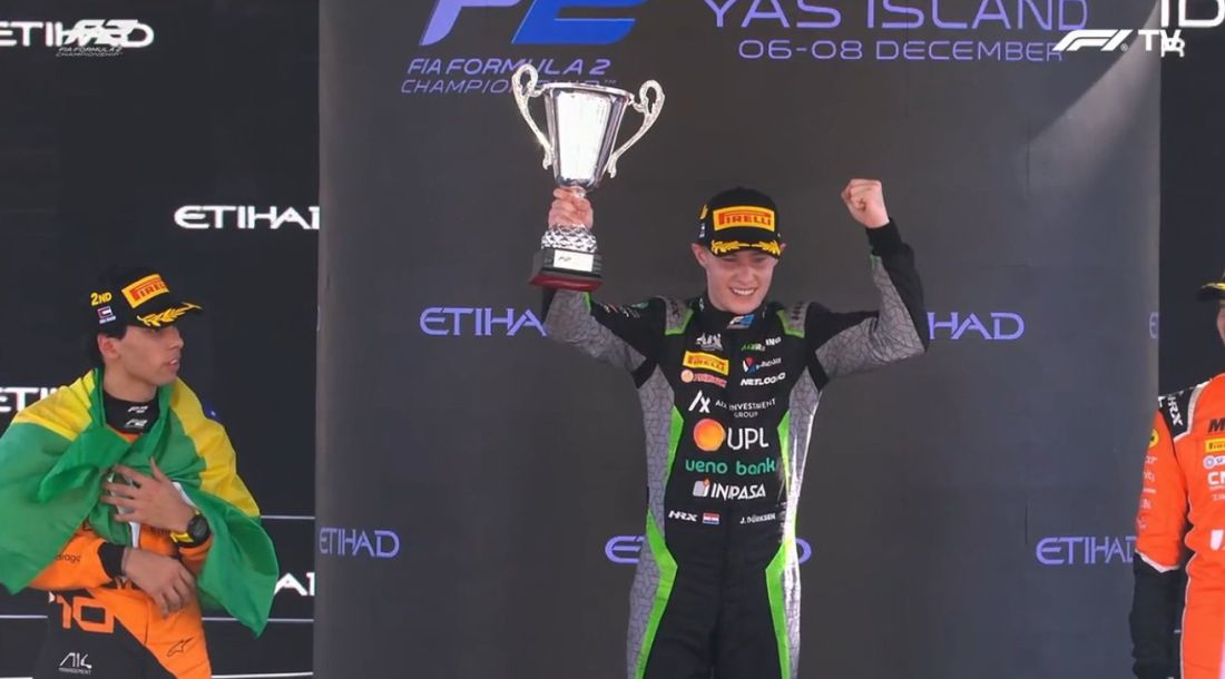 Bortoleto cruzó la línea detrás de Düerksen para coronarse Campeón de Pilotos de F2 2024 con su segundo resultado P2 del fin de semana.