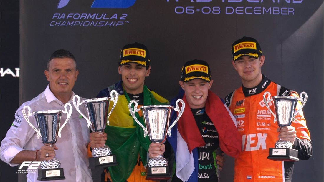 “Campeón de F2… Gracias a todos por apoyarme esta temporada. No podría estar más feliz de lo que estoy ahora. Felicitaciones a Joshua por su primera victoria en una carrera destacada. Estoy muy orgulloso, ahora disfrutemos. Gracias a todos los fanáticos brasileños y los veré en la F1”.