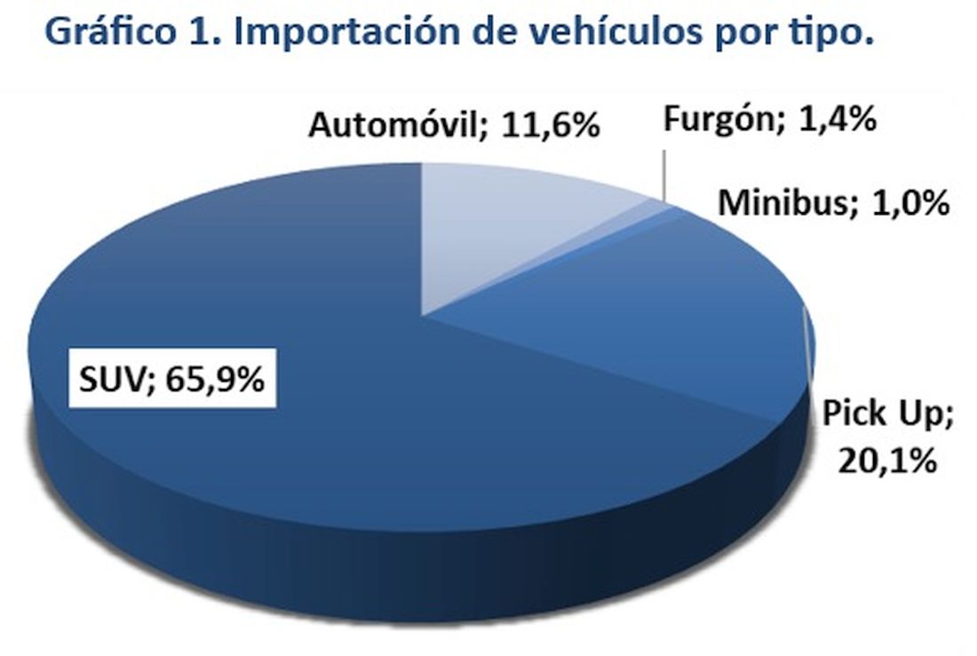 En el análisis por tipo de vehículo, las camionetas cerradas o SUV lideran ampliamente las importaciones con 6.961 unidades, concentrando el 65,9% de participación y un crecimiento del 46,9%. Las pick-up alcanzaron 2.122 unidades, con una participación del 20,1% y una variación de 16,9%. Por su parte, los automóviles totalizaron 1.227 unidades, con el 11,6% de participación y una variación de – 3,2%.