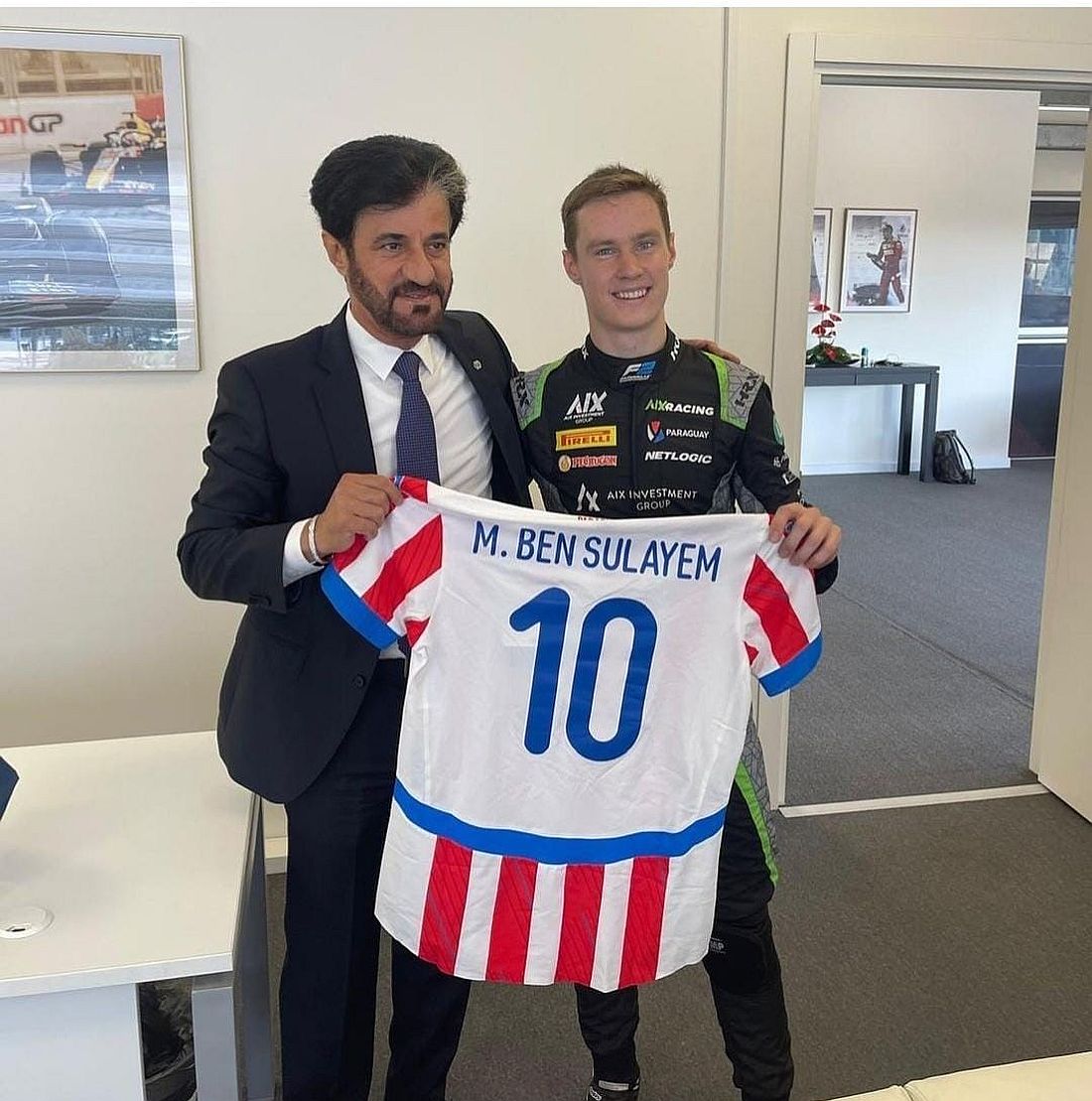 El talentoso piloto guaraní fue congratulado por su logro por el presidente de la Federación Internacional del Automovilismo (FIA), Mohammed ben Sulayem en sus redes sociales y de manera personal de Bakú, en donde Joshua le entregó una casaca oficial de la Selección de Fútbol de su país con el número 10 en su espalda.