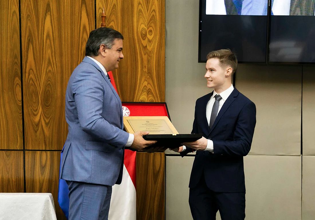 Joshua terminó recibiendo el saludo y reconocimiento del presidente del congreso, el Dr. Raul Latorre, quien expresó su orgullo por los logros obtenidos por el piloto paraguayo.
