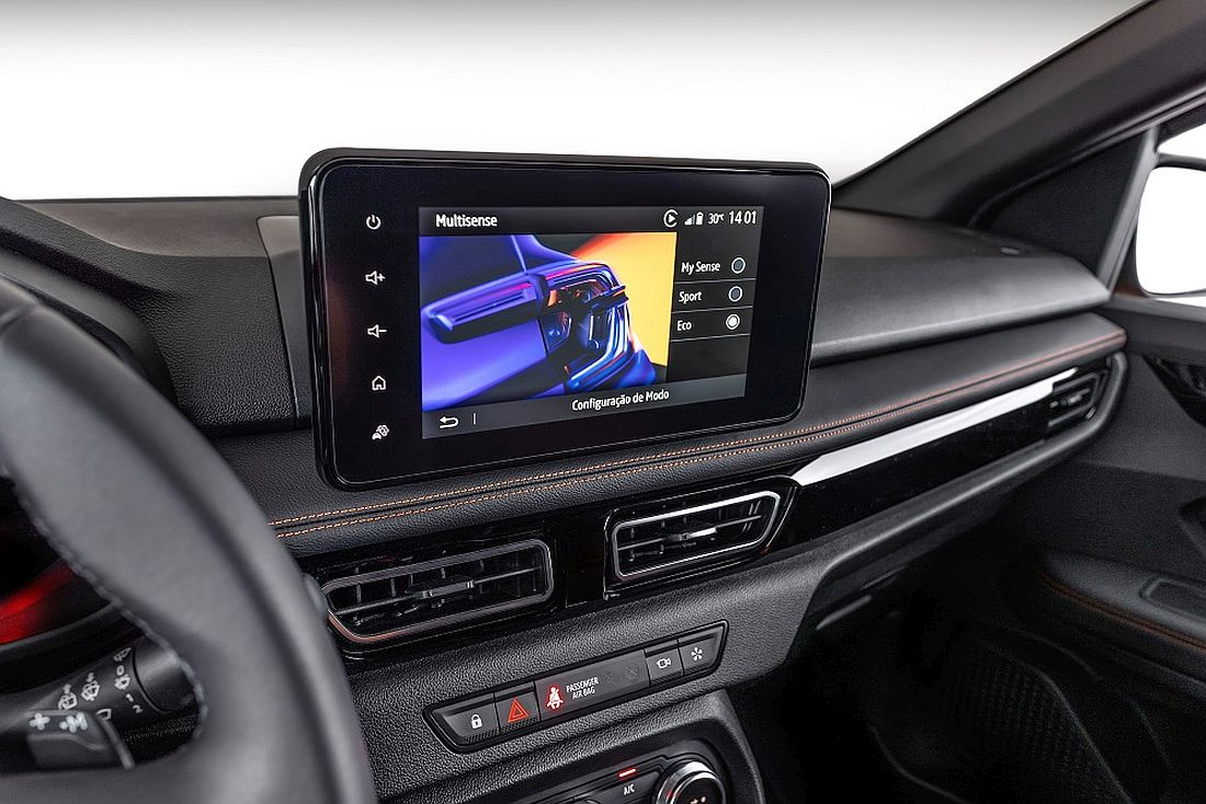 Otro elemento importante del diseño interior es el freno de estacionamiento electrónico disponible a partir de la versión techno. Además de contribuir a la modernidad del habitáculo, este elemento también beneficia el aprovechamiento del espacio para portavasos, que es extraíble, aumentando la capacidad de la consola.