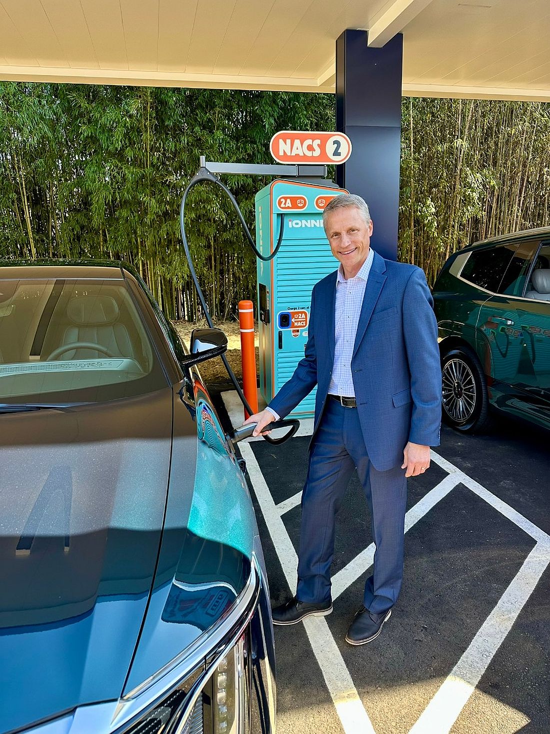 IONNA inauguró su primera sucursal en el área de Research Triangle Park en Carolina del Norte. Apex, NC Rechargery cuenta con 10 bahías de carga que admiten los estándares de carga NACS y CCS, con una capacidad de carga rápida de hasta 400 kW en cada bahía.