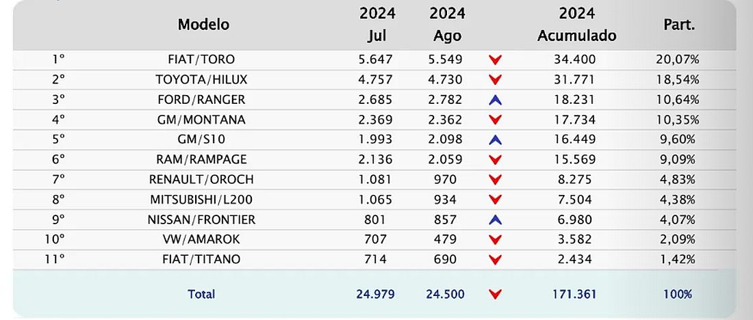 Inexplicablemente, la entidad todavía incluye en la categoría Fiat Toro, Chevrolet Montana, Renault Oroch y Ram Rampage, modelos unibody más pequeños, con menor capacidad de carga y un perfil de mercado completamente diferente.