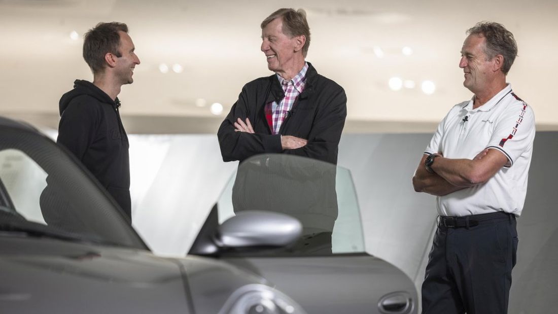 ]Timo Bernhard, ganador de Le Mans y embajador de Porsche, ejerce de presentador y muestra algunos de los mejores modelos de la marca para que los invitados expresen sus opiniones sobre ellos. Los espectadores pueden conocer las impresiones de, entre otros: Thomas Krickelberg, Director de Excelencia Operativa de las gamas 911/718; Norbert Singer, antiguo ingeniero de Competición de Porsche; Frank Jung, Director de Archivos Corporativos de Porsche; Hermann Burst, antiguo Jefe del departamento de Desarrollo de Carrocerías; y Walter Röhrl, bicampeón del mundo de rallyes y embajador de Porsche.
