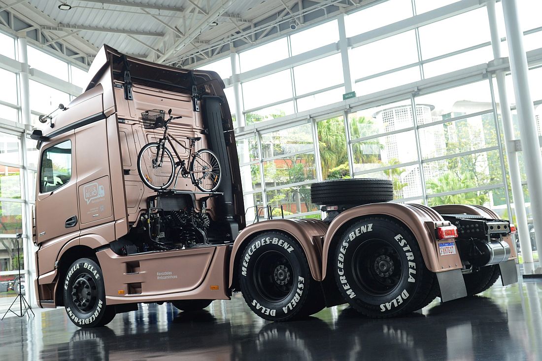 El Actros Estrela Delas, según Marcos Andrade, gerente senior de Marketing de Producto de Camiones de Mercedes-Benz do Brasil, quien aceptó el proyecto, es un producto original de fábrica sin precedentes en el mundo. “Incluso despertó el interés de la central”, recuerda.