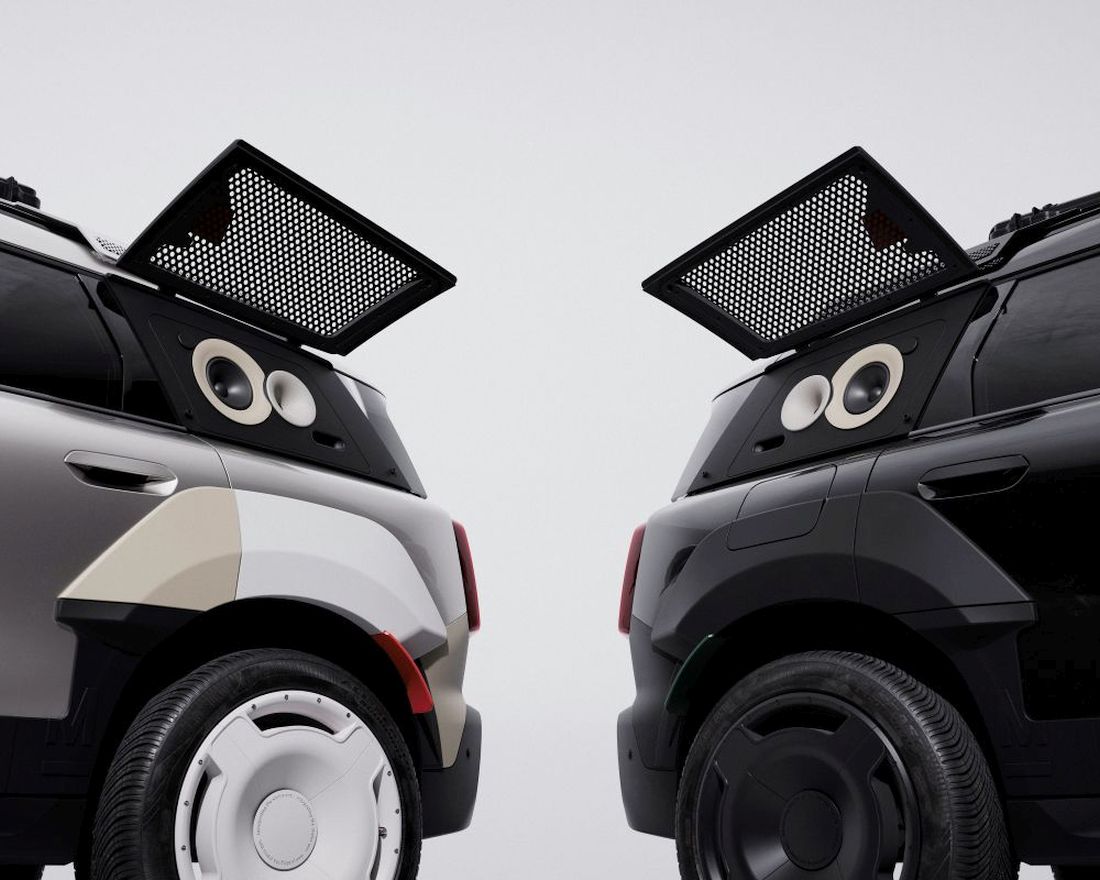 Los tweeters y altavoces medios están integrados directamente en la carrocería, mientras que subwoofers adicionales en la parte trasera entregan un potente impacto cuando se abre la cajuela. Cada vehículo funciona como un sistema de sonido independiente — sin embargo, juntos, ambos MINI Countryman concepto forman un escenario móvil, creando una experiencia sonora inmersiva.