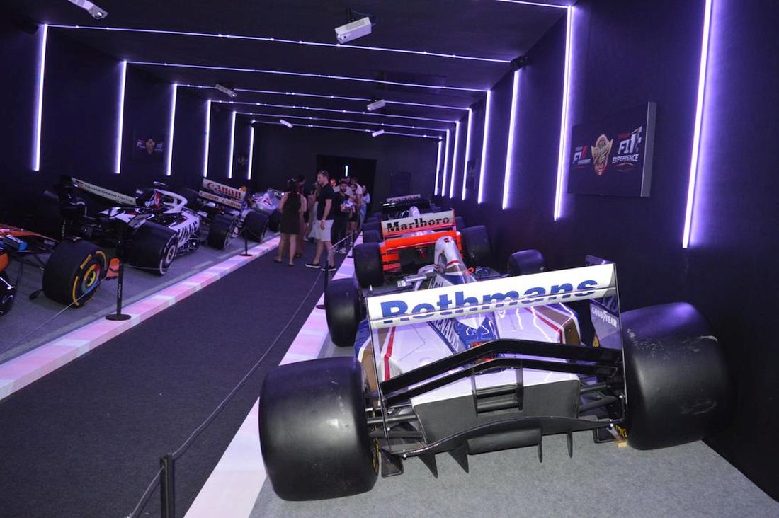Autos de F1 que marcaron una era se ubican en un túnel especialmente diseñado para recrear la sensación de una carrera real.