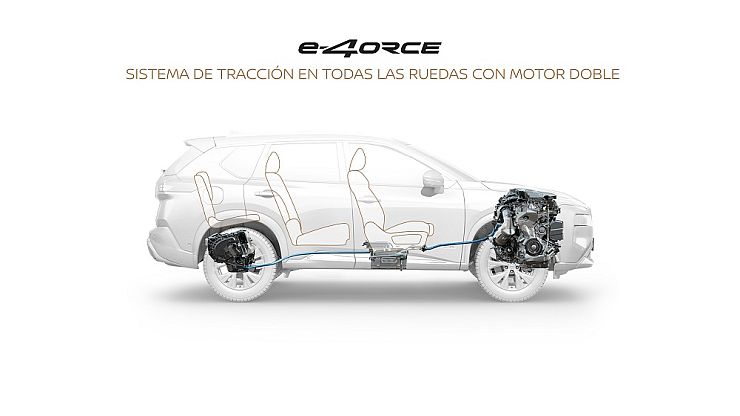 En línea con el compromiso de ofrecer tecnologías innovadoras y que mejoren la experiencia de conducción, Nissan desarrolló el sistema e-4ORCE, que es la tecnología de tracción integral electrificada exclusiva de Nissan. e-4ORCE ofrece una conducción suave, controlada y una sensación de manejo superior, seguridad en todas las superficies y comodidad para todos los pasajeros.
