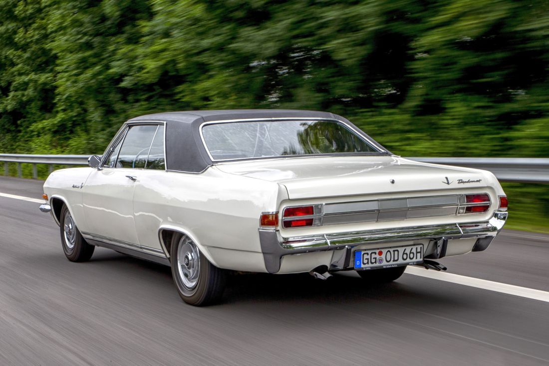 En sus dos generaciones (1964-68 y 1969-77) el Opel Diplomat fue el buque insignia de la marca del rayo, gracias a sus motores de altas prestaciones, como el 5.4 litros V8 de 230 CV, sus acabados y materiales lujosos y sus casi 5 metros de longitud.