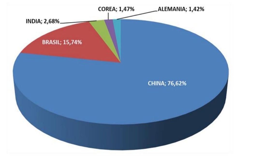 China concentra el 76,62% de las importaciones de las maquinarias viales y de construcción, le siguen Brasil con 15,74%, India con 2,68%, Corea con 1,47% y Alemania con 1,42%.