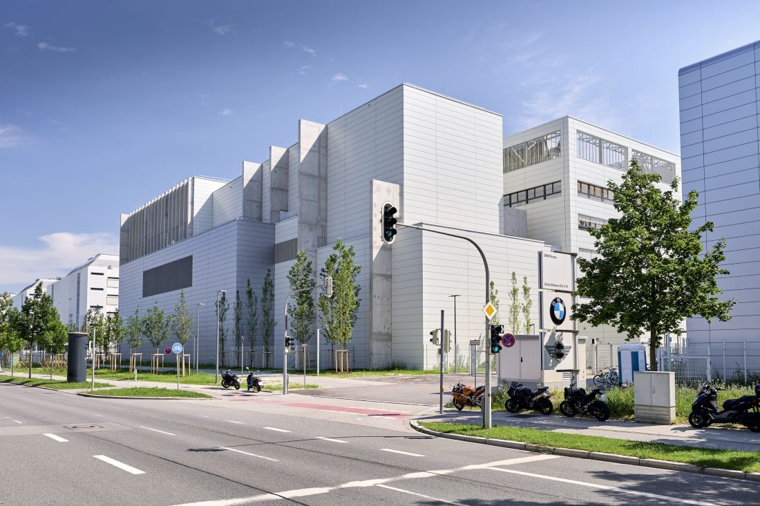 La segunda “casa adosada” del AEC alberga talleres, bancos de prueba y medición, y líneas de prototipos. Aquí, el enfoque también está en la movilidad eléctrica. Los expertos del Grupo BMW están construyendo y probando prototipos de futuras baterías de alto voltaje para vehículos eléctricos aquí. Se disponen de 15,000 m² para este propósito en varios pisos. En un área adicional de 800 m², se fabricarán inversores para futuros motores eléctricos en una línea piloto, bajo condiciones de sala limpia. El inversor es un componente crucial en un motor eléctrico. Su tarea es, entre otras cosas, convertir la corriente continua de la batería de alto voltaje en corriente alterna para su uso en el motor eléctrico. Para ser flexible a largo plazo, los espacios en el AEC están diseñados para ser “multifuncionales”. Esto significa que la empresa también podrá responder a diversos requisitos en el futuro y reconstruir los espacios en un corto período de tiempo.