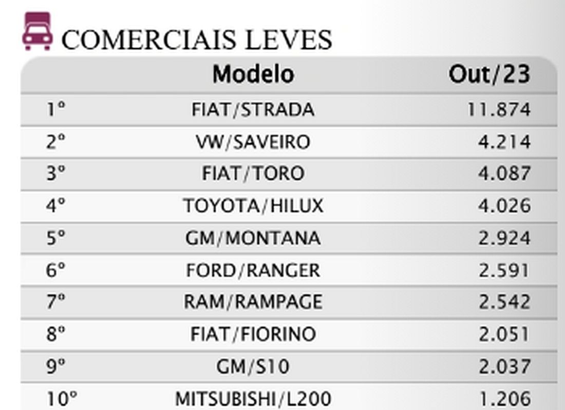Este año, está detrás del Fiat Strada, líder absoluto del segmento y también del total del mercado turístico y comercial ligero —con 98,5 mil licencias—, del propio Toro (42,2 mil), del veterano Volkswagen Saveiro (38,2 mil) y del Toyota. Hilux (39,1 mil).