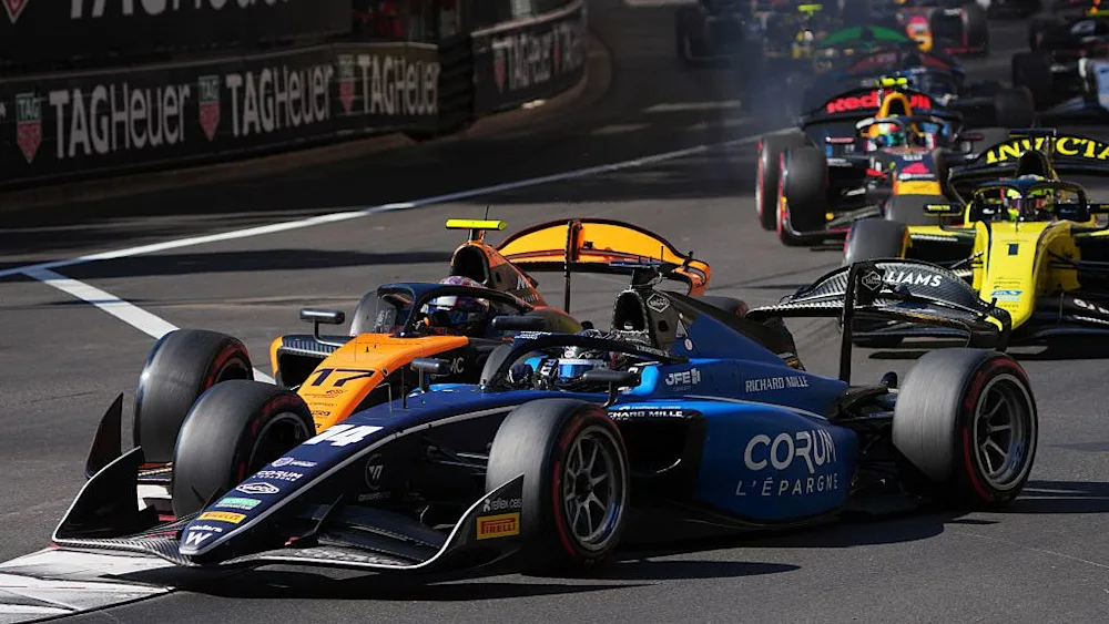 El poleman Alexander Dunne tuvo una salida lenta y Victor Martins logró ponerse al lado del coche de Rodin Motorsport en la curva 1. Ambos hicieron un contacto que los dejó contra el muro en Sainte Devote y provocó que varios pilotos que iban detrás se vieran involucrados en el incidente, lo que provocó que aparecieran las banderas rojas.