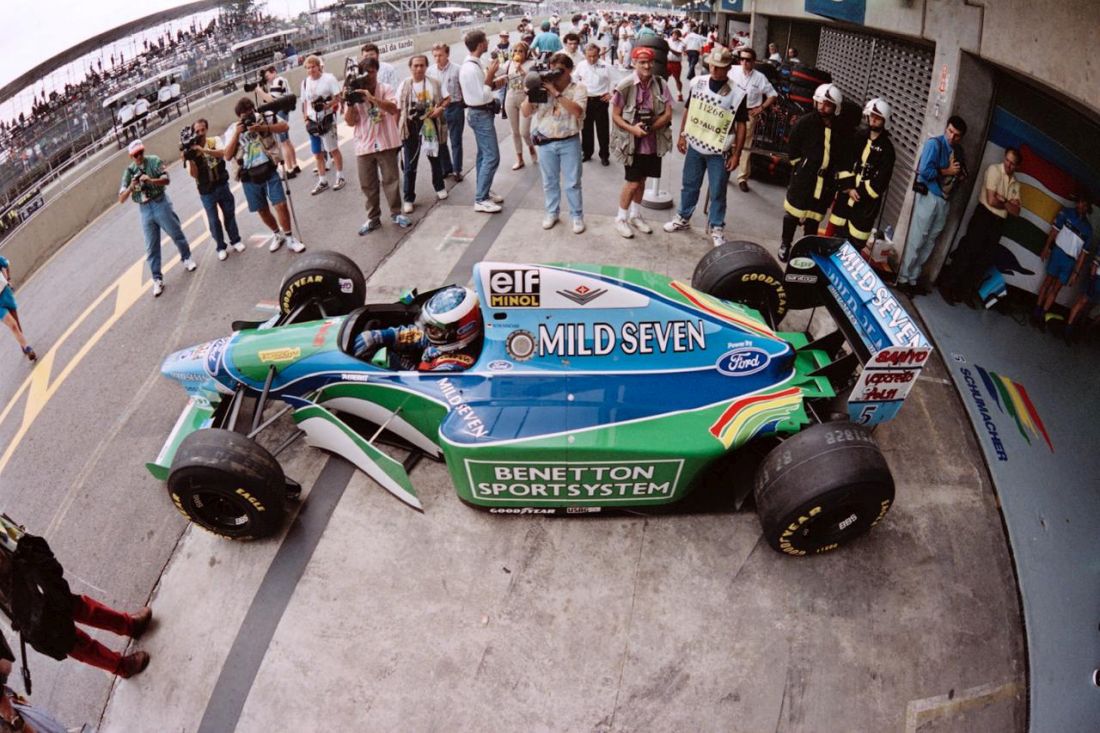 Ayer, 27 de marzo, pero del año 1994, Michael Schumacher ganó el Gran Premio de Brasil con Benetton-Ford Cosworth V8 de 3.5 litros.