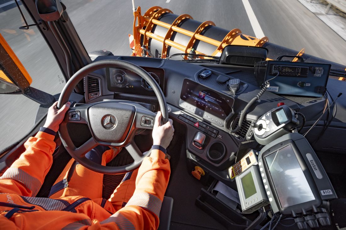 Un Arocs 2948 de alto rendimiento con equipamiento para el mantenimiento invernal también llegará al Demopark. El Arocs, que hasta ahora se ha utilizado principalmente en el sector de la construcción, se presentará en el Demopark con tracción 6×4/4×4. El vehículo cuenta con tracción delantera permanente y un eje trasero direccional.