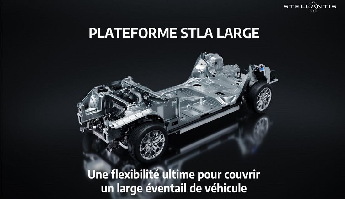 STLA Large es una de las cuatro plataformas BEV globales, presentadas en el EV Day 2021 , que formarán la base de los productos futuros de la empresa. Son esenciales para lograr los audaces objetivos del plan estratégico Dare Forward 2030 de Stellantis. Esta es la segunda plataforma que se revela después del lanzamiento en julio de 2023 del mejor STLA Medium de su clase. STLA Large se implementará en varias fábricas de Europa y América del Norte y estará disponible en variantes multienergía, incluidas las híbridas y de combustión interna. Las marcas icónicas de Stellantis adaptarán los vehículos STLA Large a las necesidades y deseos de sus clientes, ya sean vehículos familiares, vehículos de alto rendimiento, vehículos todoterreno 4×4 o vehículos de lujo.