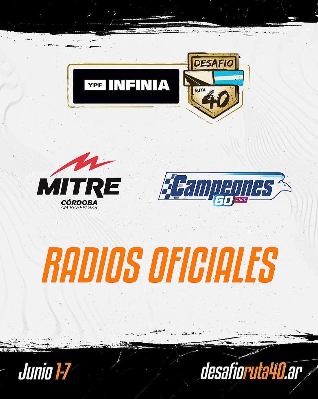 El Desafío Ruta 40 YPF INFINIA se complace en anunciar que Radio Mitre Córdoba y Campeones serán las estaciones de radio oficiales de su 12° edición, asegurando una cobertura exhaustiva y de alta calidad para esta apasionante competencia. La carrera, que se disputará del 1 al 7 de junio en las provincias de Córdoba, San Juan y La Rioja, contará con la cobertura más completa gracias a estos dos destacados locutores.
