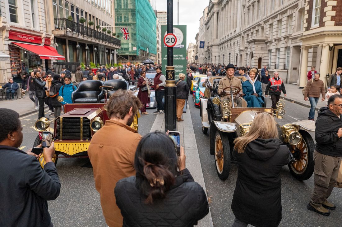 Mercedes-Benz Classic presentó el Benz Spider y, además, un Mercedes-Simplex 28/32 hp antes de la “Run” como parte del St. James’s Motoring Spectacle celebrado en el centro de Londres el sábado 1 de noviembre de 2025. El viernes 31 de octubre de 2025, las dos joyas ya estaban disponibles para el trabajo de producción de contenido en el circuito de Mercedes-Benz World en el cercano Brooklands.