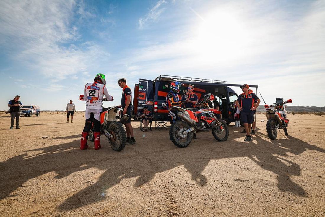 Estamos ante una pareja de jubilados felices y realizados. Toby Price y Sam Sunderland han puesto punto final a sus respectivas carreras en motos, después de haber ganado el Dakar en dos ocasiones cada uno. Su antigua categoría les echa de menos, pero aquí están de nuevo en el vivac, formando equipo para tomar la salida en un Toyota Hilux, lo que ha generado una gran expectación. El australiano, concentrado en este cambio de rumbo desde hace unos años, fue quien tomó la iniciativa de sellar esta unión con su antiguo colega de KTM: “Estábamos en un campamento de entrenamiento y después de un día difícil con la moto, enfrentándonos a un montón de rocas en el frío”, recuerda Sam. Pensamos: ‘¿No sería mejor ir en coche, bien protegidos?’. Cuando ya estaba retirado de las carreras de motos, me envió un día un mensaje preguntándome si quería subirme a un coche con él. Le dije: ‘Pues venga’, y aquí estamos.”Antiguos pilotos de motos de gran éxito han escrito páginas prestigiosas en el Dakar tras pasarse a los coches, empezando por Hubert Auriol, Nani Roma o Stéphane Peterhansel, sin olvidar a Cyril Despres o más recientemente Laia Sanz, que terminó 23ª en su primer intento en coches en 2022. Toby Price está listo para asumir el reto: “Vamos a hacerlo lo mejor posible y vamos a apuntar alto. Queremos divertirnos y también tenemos mucho que aprender, pero sería un gran objetivo aspirar al Top 10”. El británico comparte la ambición de su piloto y confirma que no hay que preocuparse por la complicidad de ambos en el habitáculo: “Hemos pasado mucho tiempo juntos en los últimos diez años. Y sobre todo sabemos lo que es el Dakar, lo hemos ganado dos veces cada uno. Creo que nunca se ha dado una alianza así en un coche. Toby ya tiene experiencia al volante y yo también tengo experiencia en navegación, por lo que me parece que tenemos una buena combinación de habilidades. Si podemos llegar a la meta final sin sufrir demasiados contratiempos, quedaremos en una buena posición”.